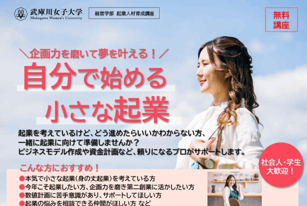 7/5開講:武庫川女子大学&兵庫県主催「小さな起業」をテーマにした起業人材育成講座の講師をします