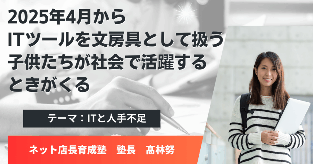 ネット店長育成塾の高林です。今日は、私が講演や伴走支援を通じて改めて考えている「ITと人手不足解消」についての話をさせてください。