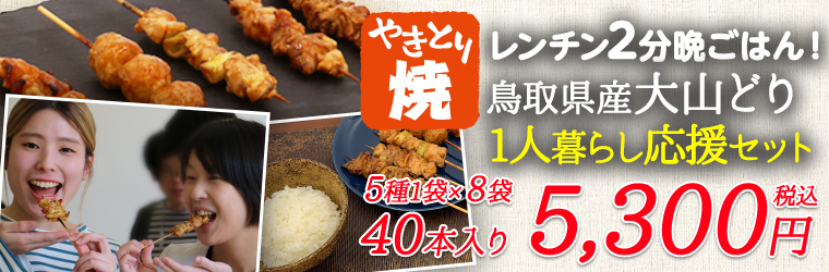 焼き鳥販売のとっとり大黒堂では新商品「1人暮らし応援セット☆5種1袋×8袋の焼き鳥40本セット」の販売を開始いたしました。