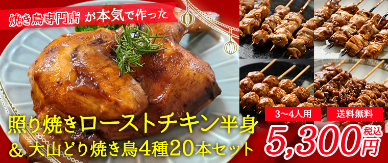 限定販売!国産 特大ローストチキン半身+大山どり焼き鳥4種20本セット【3~4名様用】