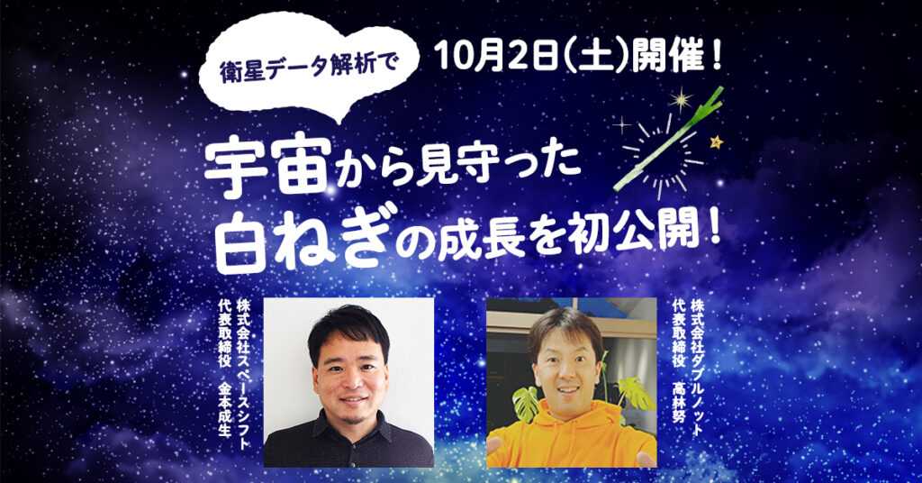 今イベントでは、衛星データ解析で白ねぎの生育を見守ったスペースシフトさんとダブルノットの約半年間の軌跡をご紹介しました。