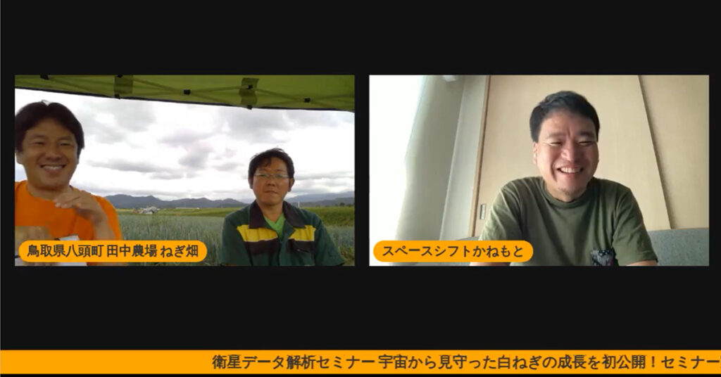 そして、スペースシフト社が宇宙から見守り続けた白ネギの生育結果は果たしてどんなものなのか? どんな味なのか? ということを、東京のスペースシフトの金本さんと、鳥取県からは田中農場の代表・田中里志さんとダブルノットの高林がオンラインで配信いたしました。