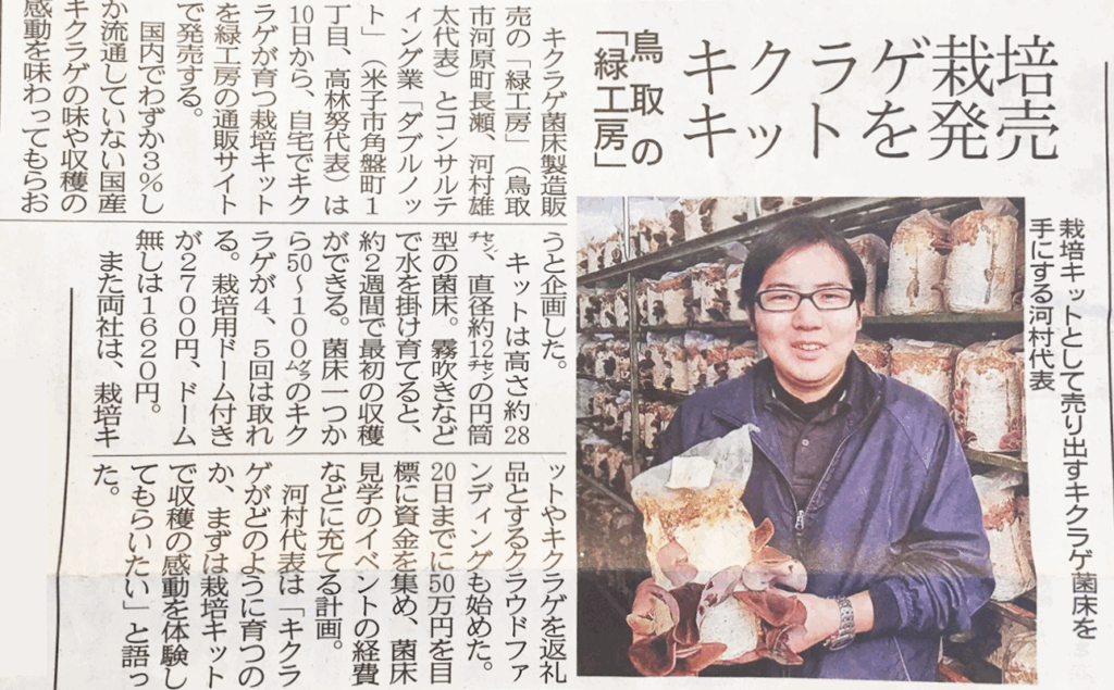 きくらげ栽培キットの取り組みが7月2日の日本海新聞に掲載されました。