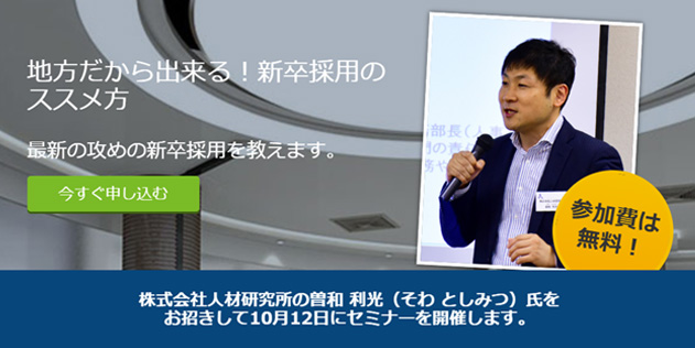 | 内 容 | 地方だから出来る!新卒採用のススメ方 |