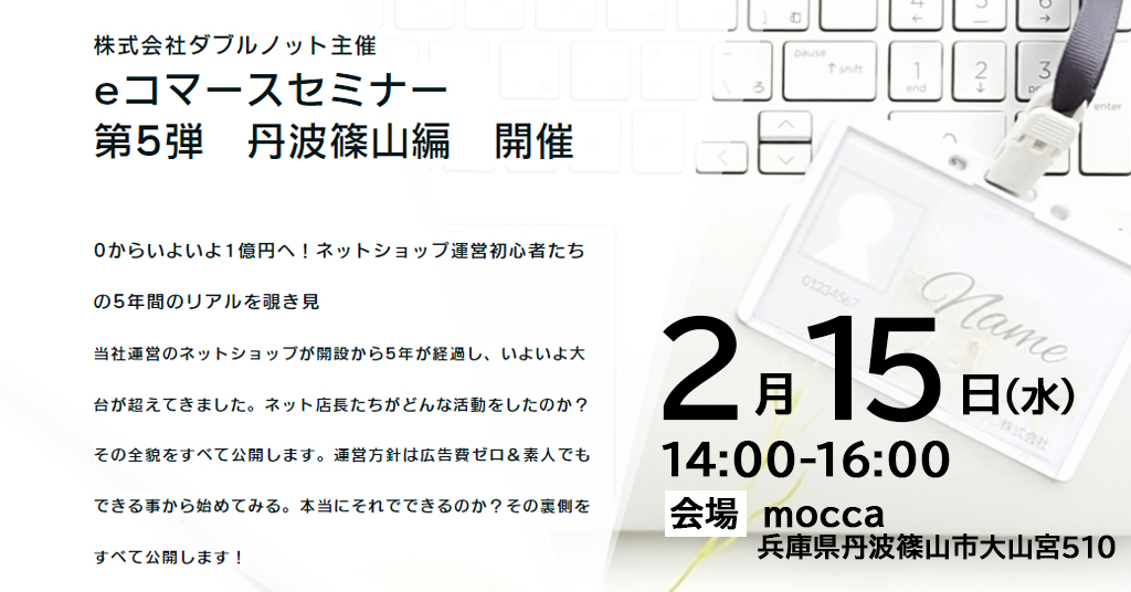 この度、株式会社ダブルノットでは兵庫県丹波篠山にて、ネットショップ運営に関心がある方、これから始めてみたい方向けを対象に、「eコマースセミナー」を開催いたします。