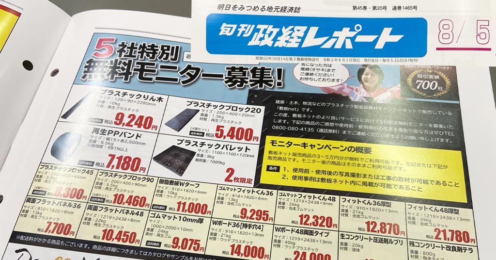 【メディア掲載】「旬刊政経レポート」8月5日号に敷板netのキャンペーンを掲載しております