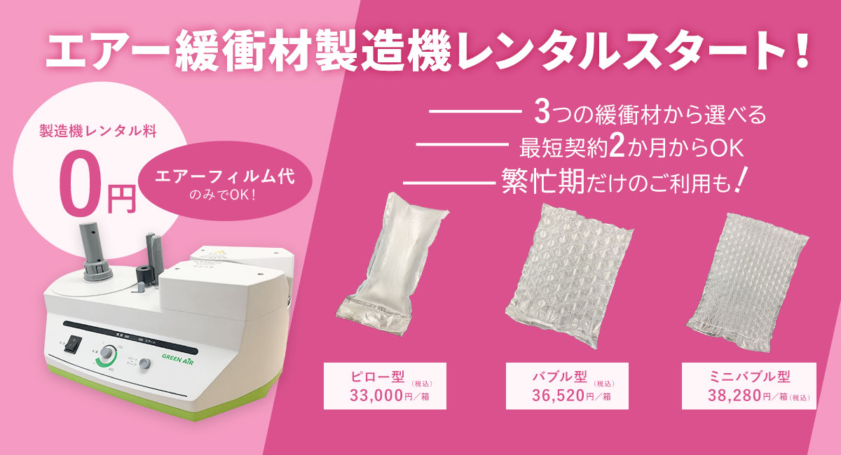 インターネット販売サイト「敷板net」がエアー緩衝材製造機の無料レンタルを開始!初期費用・レンタル費用0円!レンタル期間最短2か月でご提供!